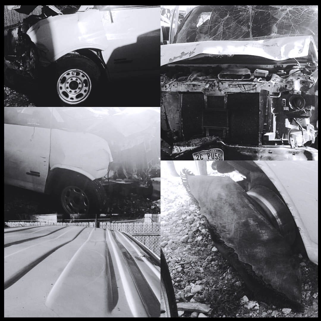 Thirteen Cedar trees couldn’t stop that turbo diesel van. One tall strong oak tree did. The tires exploded upon impact.